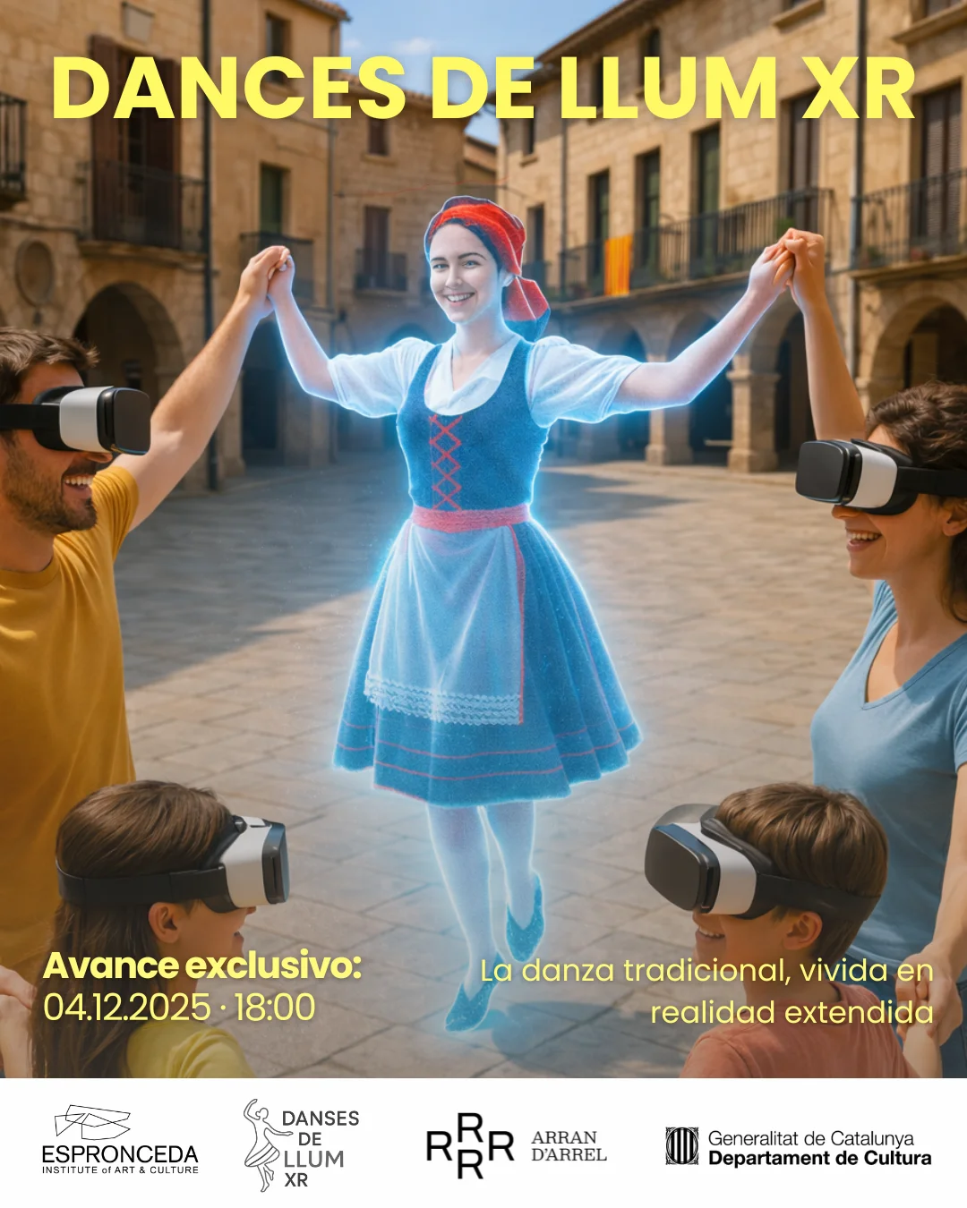Danses de Llum XR es un proyecto inmersivo independiente presentado como proyecto especial en la inauguración de IMMENSIVA. Diseñada para públicos de todas las edades, esta experiencia de realidad aumentada invita a explorar el patrimonio cultural catalán a través de la interacción coreográfica. Las danzas tradicionales —sardanas, jotas y balls de bastons— se reinterpretan mediante coreografías holográficas, IA adaptativa y movimiento participativo. La obra crea un ritual colectivo que une tradición e innovación, celebrando el ritmo, la inclusión, el intercambio intergeneracional y la continuidad vibrante de la comunidad a través de los medios inmersivos.