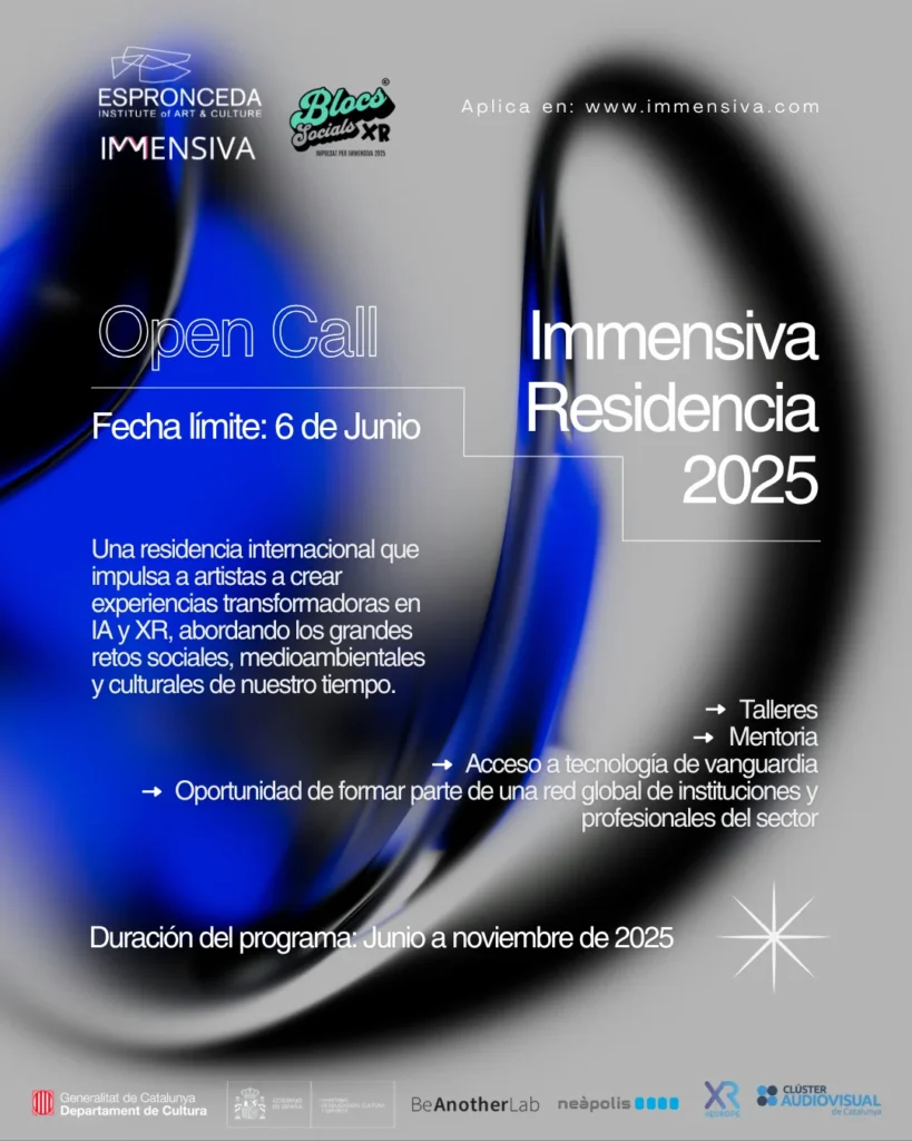 En su sexta edición, IMMENSIVA 2025 se reinventa fusionando inteligencia artificial, realidad extendida (XR) y danza colaborativa para crear proyectos inmersivos con un fuerte componente social. Es la oportunidad perfecta para artistas, creadores y desarrolladores interesados en cómo la tecnología puede transformar la sociedad a través de la inclusión, la diversidad y la sostenibilidad.