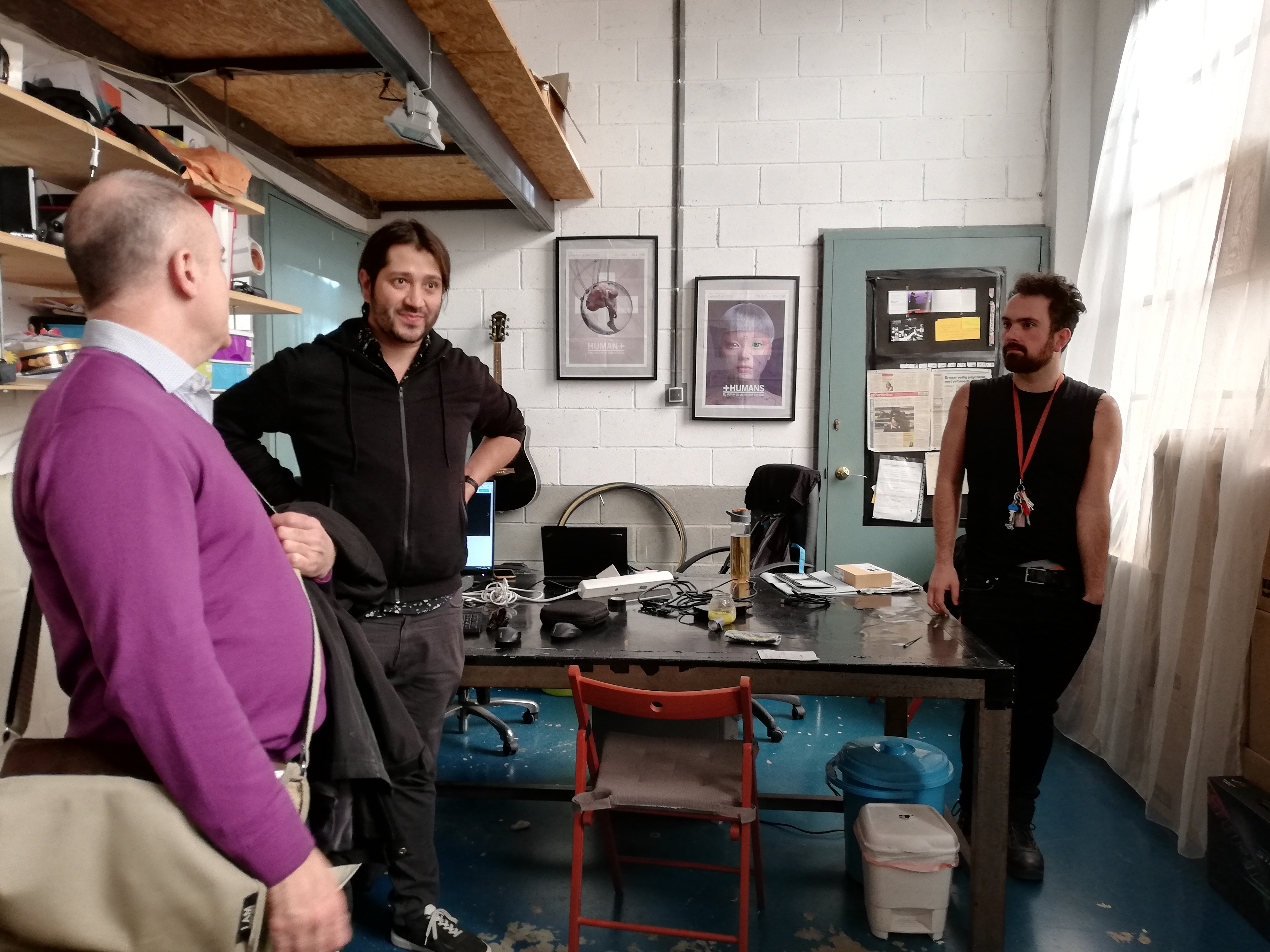 Lunes 10: 18h. Habla con Maria Almena. Estudio Kimatic Los artistas también recibieron la visita de D. Oriol Pastor, director de Mira Digital Festival, Llum Festival e IDEAL Digital Center